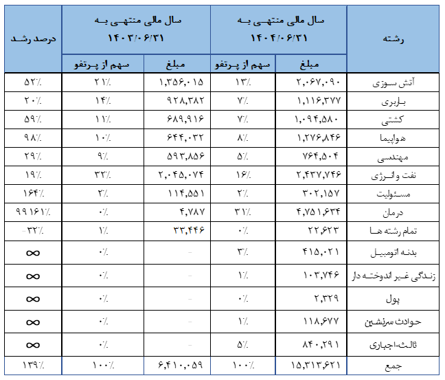 در سال مالی منتهی به 1404/06/31 عمکلرد بیمه ای شرکت به شرح ذیل بوده است: